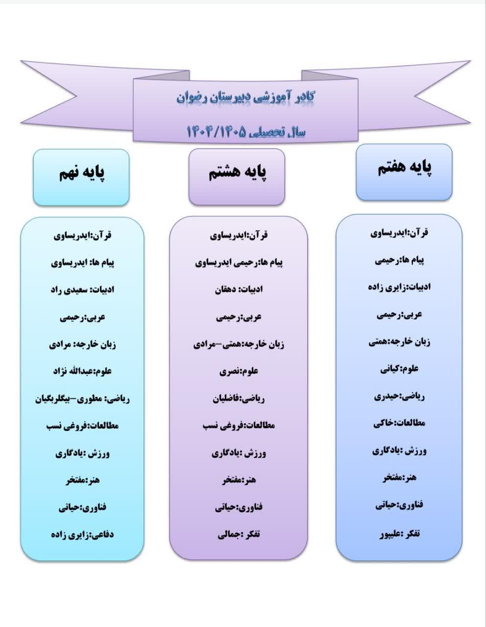 کادر اداری و آموزشی دبیرستان رضوان سال تحصیلی 1405/1404